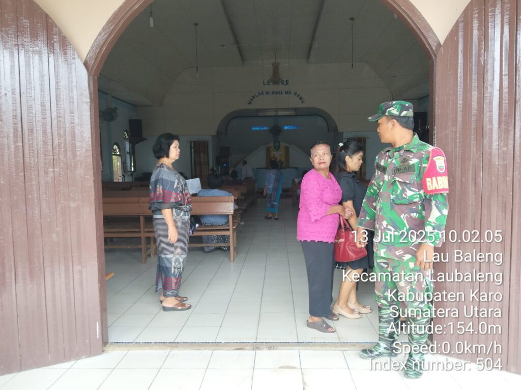 Karo, Jurnaliskaro.com,- Untuk menciptakan suasana yang nyaman dan aman selama beribadah, Babinsa Koramil 09 Lau Baleng Kodim 0205 Tanah Karo, melaksanakan kegiatan pengamanan kegiatan ibadah di gereja HKBP di Desa Lau Baleng Kec. Lau Baleng, Kab. Karo, Minggu (13/07/2025) pagi.
