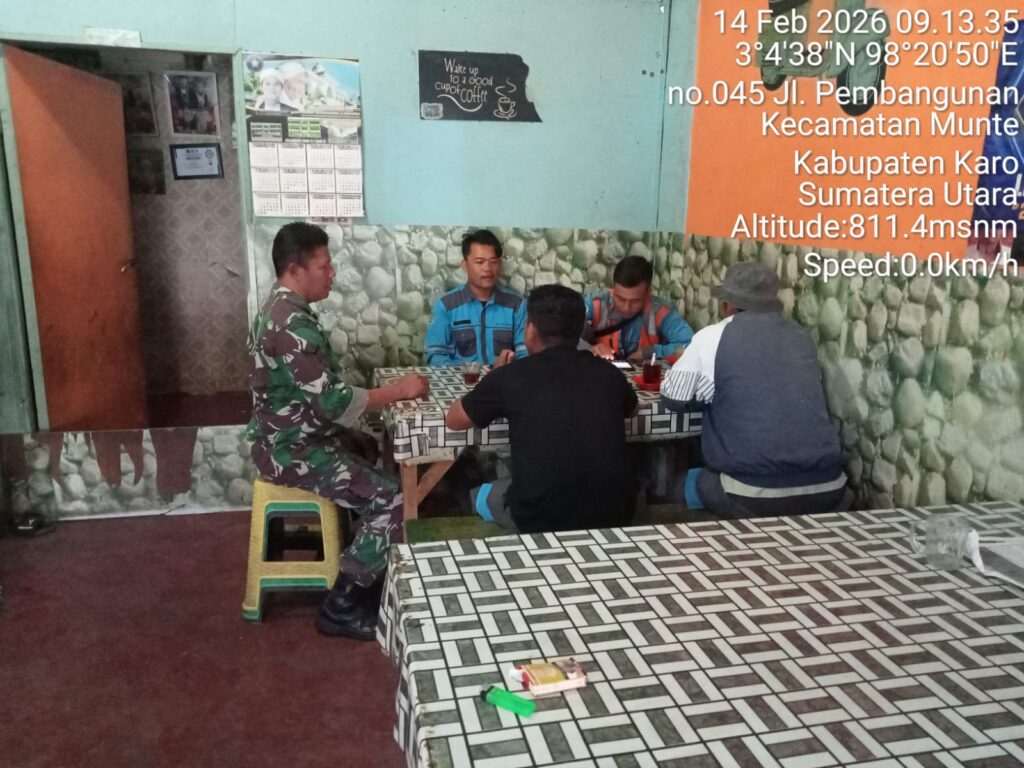 Karo, Jurnaliskaro.com,- Untuk menciptakan situasi yang aman, kondusif dan bersih, Koramil 06 Munte 0205 Tanah Karo melaksanakan Komunikasi Sosial (Komsos) bersama warga di Desa Munte Kec. Munte, Karo, Sabtu (14/02/2026) siang. Dalam kegiatan tersebut Babinsa Koramil 06 Munte Sertu Wahyudi, melaksanakan komsos dengan masyarakat tetap menjaga ketertiban dan keamanan. Dan tidak terpengaruh akan berita […]