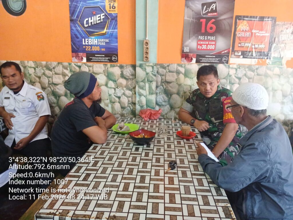 Karo, Jurnaliskaro.com,- Untuk menciptakan situasi yang aman, kondusif dan bersih, Koramil 06 Munte Kodim 0205 Tanah Karo melaksanakan Komunikasi Sosial (Komsos) bersama warga di Warung kopi di Desa Munte Kec. Munte, Karo, Rabu (11/02/2026) siang. Dalam kegiatan tersebut Babinsa Koramil 06 Munte Sertu Fahrul Raji, melaksanakan komsos dengan masyarakat tetap menjaga ketertiban dan keamanan. […]