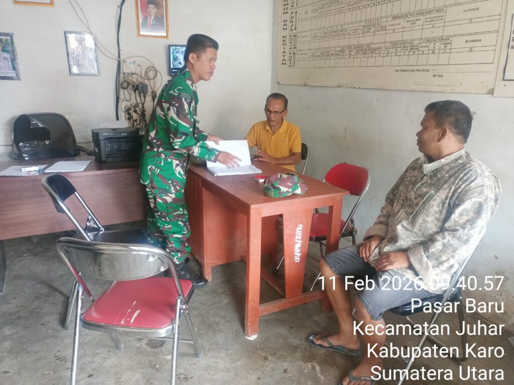 Karo, Jurnaliskaro.com,- Untuk menciptakan situasi yang aman, kondusif dan bersih, Koramil 07 Juhar Kodim 0205 Tanah Karo melaksanakan Komunikasi Sosial (Komsos) bersama warga di Desa Pasar Baru Kec. Juhar, Karo, Rabu (11/02/2026) siang. Dalam kegiatan tersebut Babinsa Koramil 07 Juhar Serda LR Lumban Batu, melaksanakan komsos dengan masyarakat tetap menjaga ketertiban dan keamanan. Dan […]