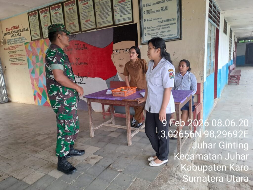 Jalin Sinergitas Koramil 07 Juhar Komsos Bersama Pihak Sekolah SMP Negeri 1 Juhar