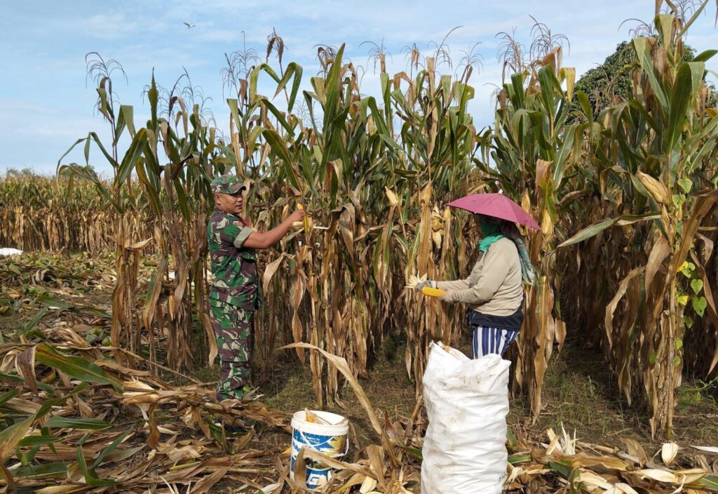 Dukung Ketahanan Pangan Babinsa Koramil 05 Payung Bantu Petani Panen Jagung