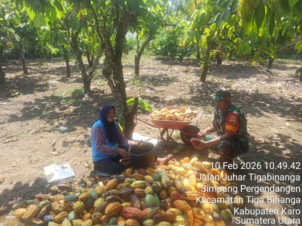 Dukung Ketahanan Pangan Koramil 08 Tiga Binanga Bantu Petani Panen da Perawatan Tanaman Kakao