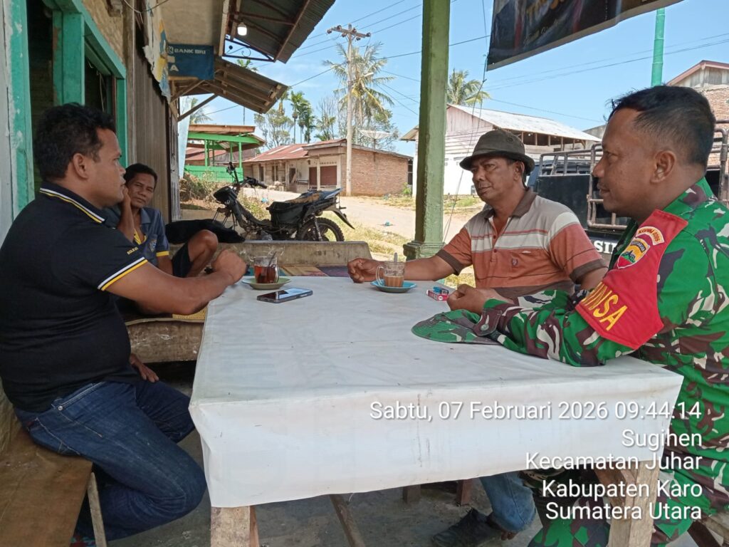 Karo, Jurnaliskaro.com,- Untuk menciptakan situasi yang aman, kondusif dan bersih, Koramil 07 Juhar Kodim 0205 Tanah Karo melaksanakan Komunikasi Sosial (Komsos) bersama warga di Desa Pernantin Kec. Juhar, Karo, Sabtu (07/02/2026) siang. Dalam kegiatan tersebut Babinsa Koramil 07 Juhar Serka Sulaiman, melaksanakan komsos dengan masyarakat tetap menjaga ketertiban dan keamanan. Dan tidak terpengaruh akan […]