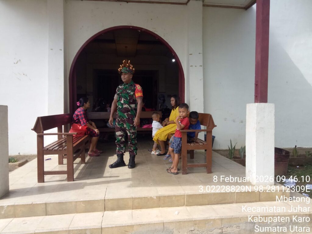 Babinsa Koramil 07 Juhar Pengamanan Gereja GBKP di Desa Mbetong