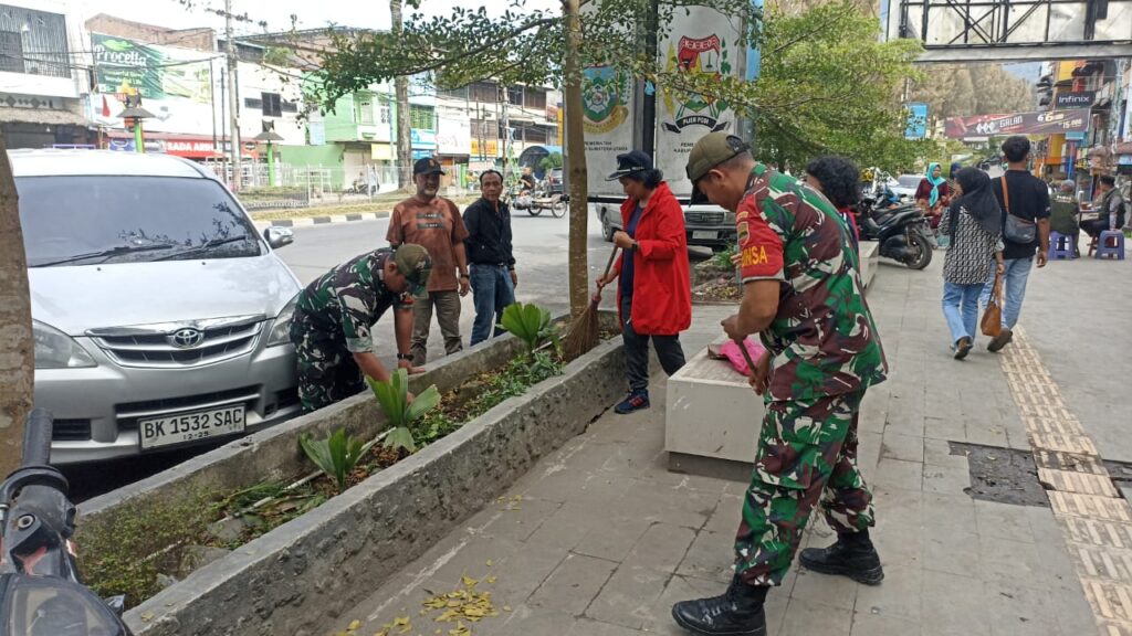 Jumat Bersih, Koramil 03 Berastagi Bersama Masyarakat Gotong Royong Bersihkan Lingkungan