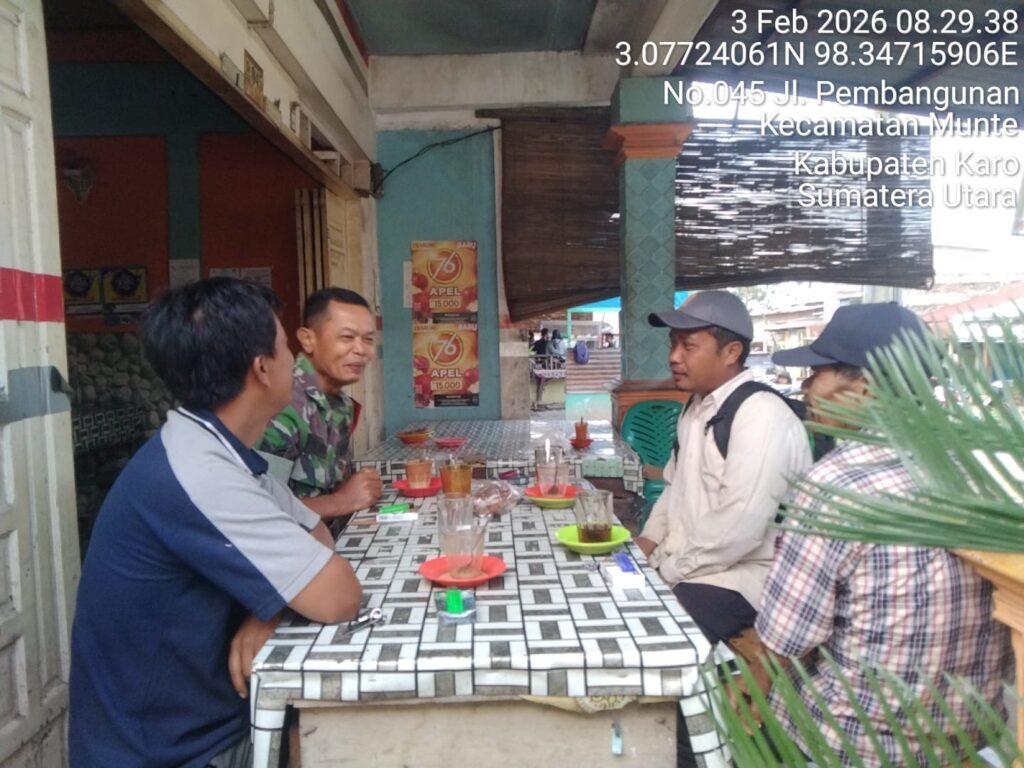 Karo, Jurnaliskaro.com,- Untuk menciptakan situasi yang aman, kondusif dan bersih, Koramil 06 Munte Kodim 0205 Tanah Karo melaksanakan Komunikasi Sosial (Komsos) bersama warga di Desa Munte Kec. Munte, Karo, Rabu (04/02/2026) siang. Dalam kegiatan tersebut Babinsa Koramil 06 Munte Sertu Fahrul Raji, melaksanakan komsos dengan masyarakat tetap menjaga ketertiban dan keamanan. Dan tidak terpengaruh […]