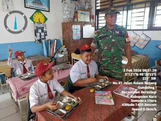Koramil 03 Berastagi Pemantauan Pendistribusian MBG ke Siswa Sekolah di Kec. Berastagi
