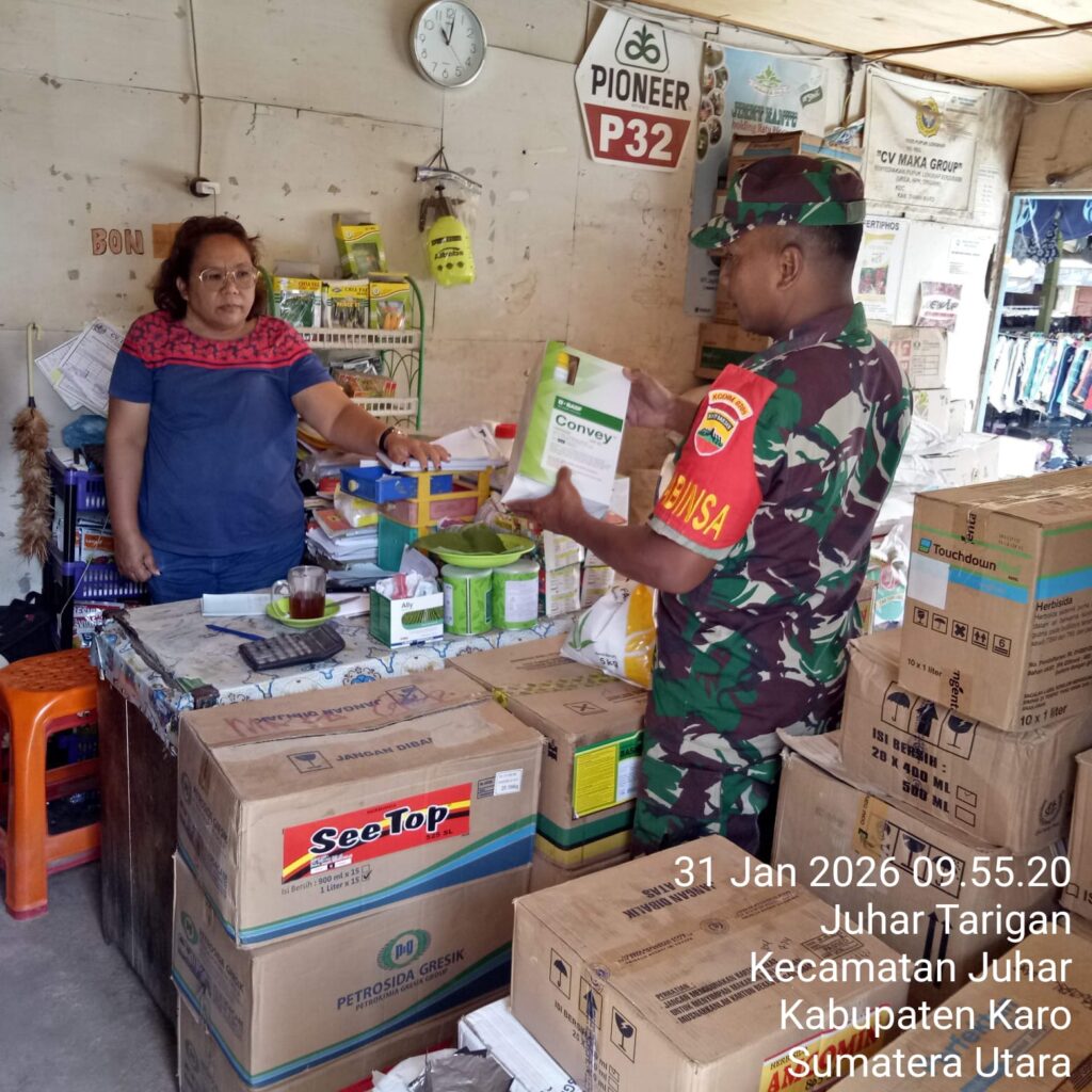 Karo, Jurnaliskaro.com,- Dalam rangka mendukung program pemerintah dalam bidang ketahanan pangan, Koramil 07 Juhar Kodim 0205 Tanah Karo melaksanakan kegiatan pengecekan ketersediaan pupuk bersubsidi dan non subsidi serta obat obatan tanaman pertanian di toko pupuk di Desa Juhar Tarigan Kec. Juhar, Sabtu (31/01/2026) siang. Babinsa Koramil 07 Juhar Serka Sulaiman, mengatakan pengecekan ini dilakukan […]
