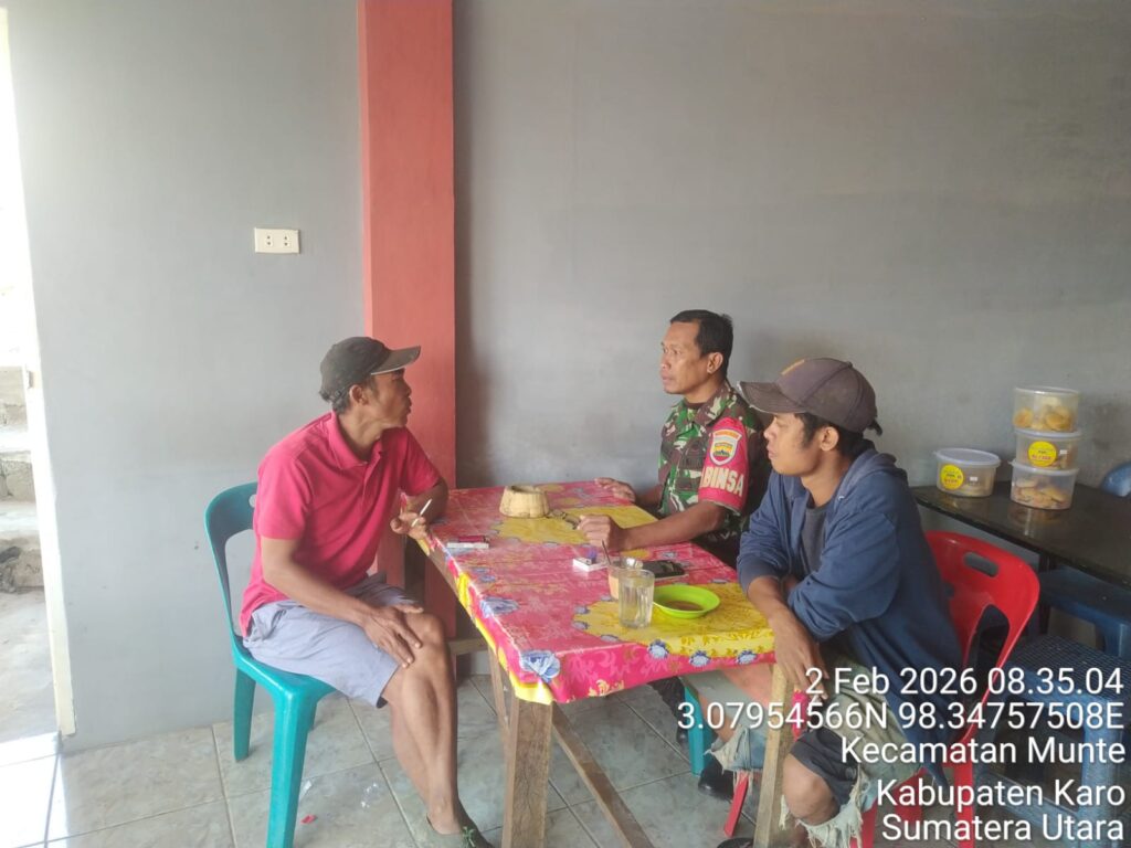 Karo, Jurnaliskaro.com,- Untuk menciptakan situasi yang aman, kondusif dan bersih, Koramil 06 Munte Kodim 0205 Tanah Karo melaksanakan Komunikasi Sosial (Komsos) bersama warga di Desa Munte Kec. Munte, Karo, Senin (02/02/2026) siang. Dalam kegiatan tersebut Babinsa Koramil 06 Munte Serka Samsuri, melaksanakan komsos dengan masyarakat tetap menjaga ketertiban dan keamanan. Dan tidak terpengaruh akan […]