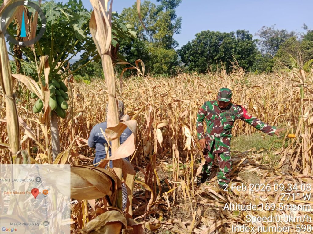 Dukung Ketahanan Pangan Babinsa Koramil 09 Lau Baleng Bantu Petani Panen Jagung