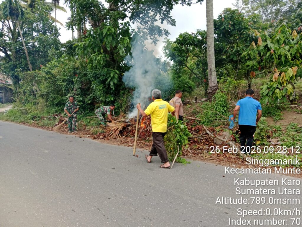 Karo, Jurnaliskaro.com,- Dengan tujuan menciptakan lingkungan yang bersih dan sehat, Koramil 06 Munte Kodim 0205 Tanah Karo bersama warga melaksanakan gotong royong membersihkan lingkungan di Desa Munte Kec. Munte, Kamis (26/02/2026) siang. Menurut Danramil Koramil 06 Munte Kapten Inf. JE Sembiring, kegiatan gotong royong pembersihan sampah di sepanjang jalan, dan juga ranting pohon yang yang […]