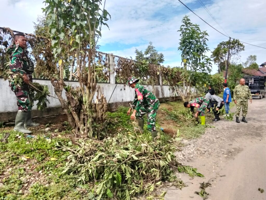 Koramil 05 Payung Bersama Forkopimca Kuta Buluh dan Warga Gotong Royong Bersihkan Lingkungan