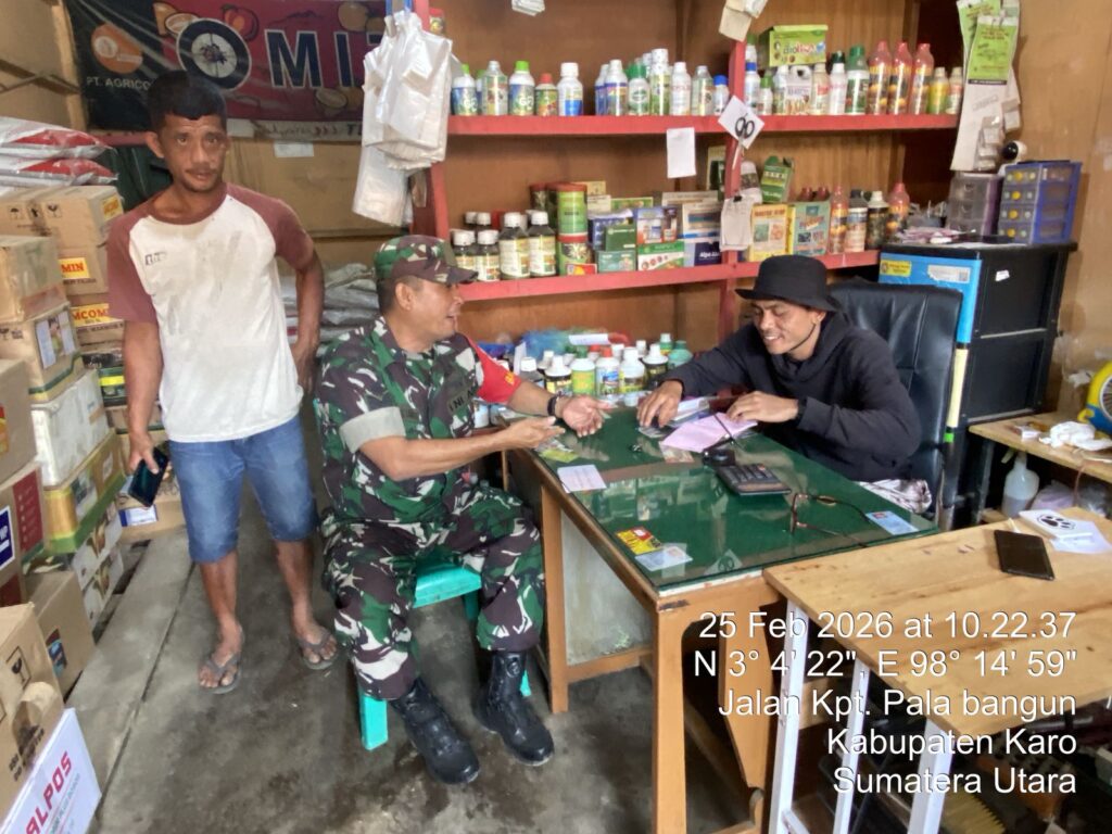 Karo, Jurnaliskaro.com,- Dalam rangka mendukung program pemerintah dalam bidang ketahanan pangan, Koramil 08 Tiga Binanga Kodim 0205 Tanah Karo melaksanakan kegiatan pengecekan ketersediaan pupuk bersubsidi dan non subsidi serta obat obatan tanaman pertanian di toko pupuk UD Sahabat Tani di Kel. Tiga Binanga Kec. Tiga Binanga, Rabu (24/02/2026) siang. Babinsa Koramil 08 Tiga Binanga […]