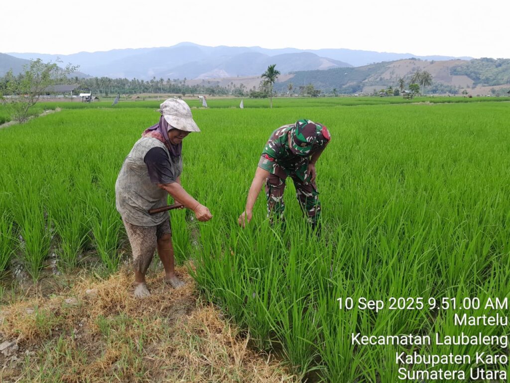 Dukung Ketahanan Pangan Babinsa Koramil 09 Lau Baleng Giat Pendampingan Pengecekan Hama Pada Lahan Pertanian