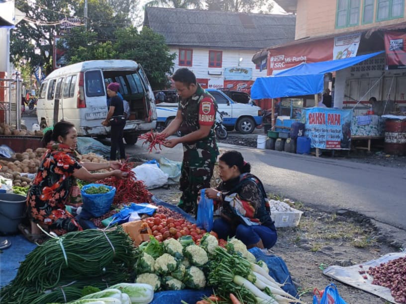 Koramil 05 Payung Giat Pengecekan Kebutuhan Pokok di Pasar Tradisional Tiga Nderket