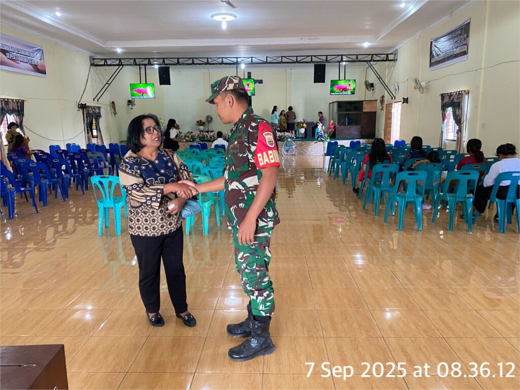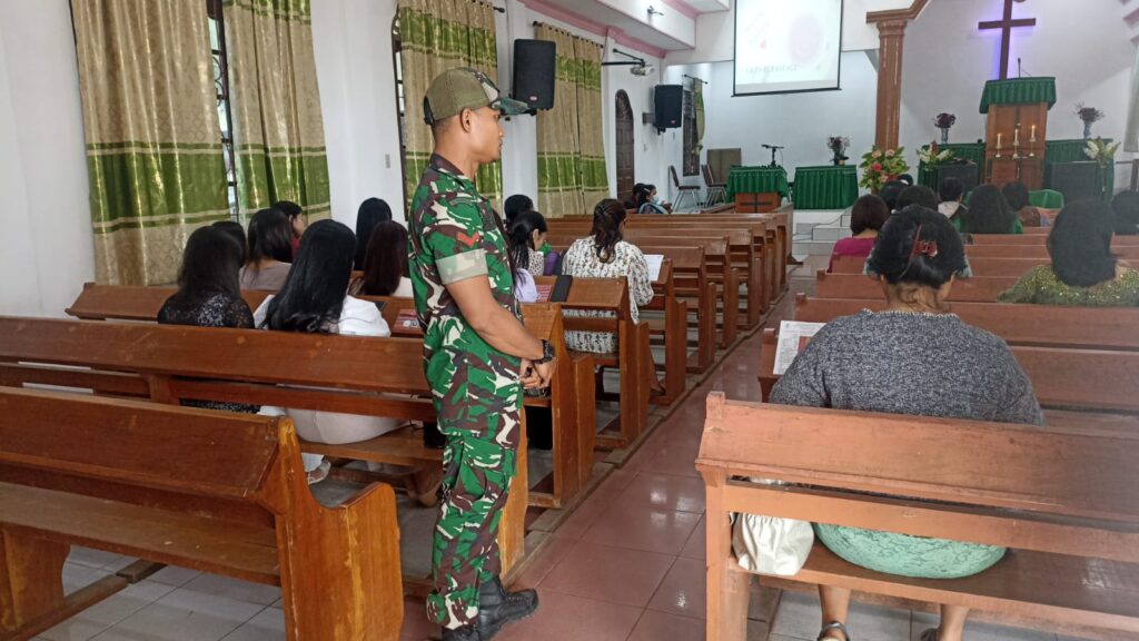 Babinsa Koramil 06 Munte Pengamanan Ibadah Gereja Katolik Klasi Munte di Desa Munte