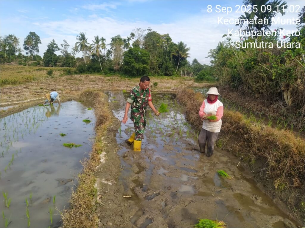 Koramil 06 Munte Komsos Bersama Petani Sekaligus Pendampingan Luas Tambah Tanam di Desa Tanjung Beringin