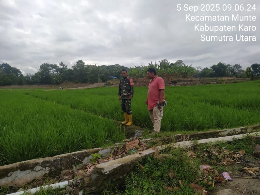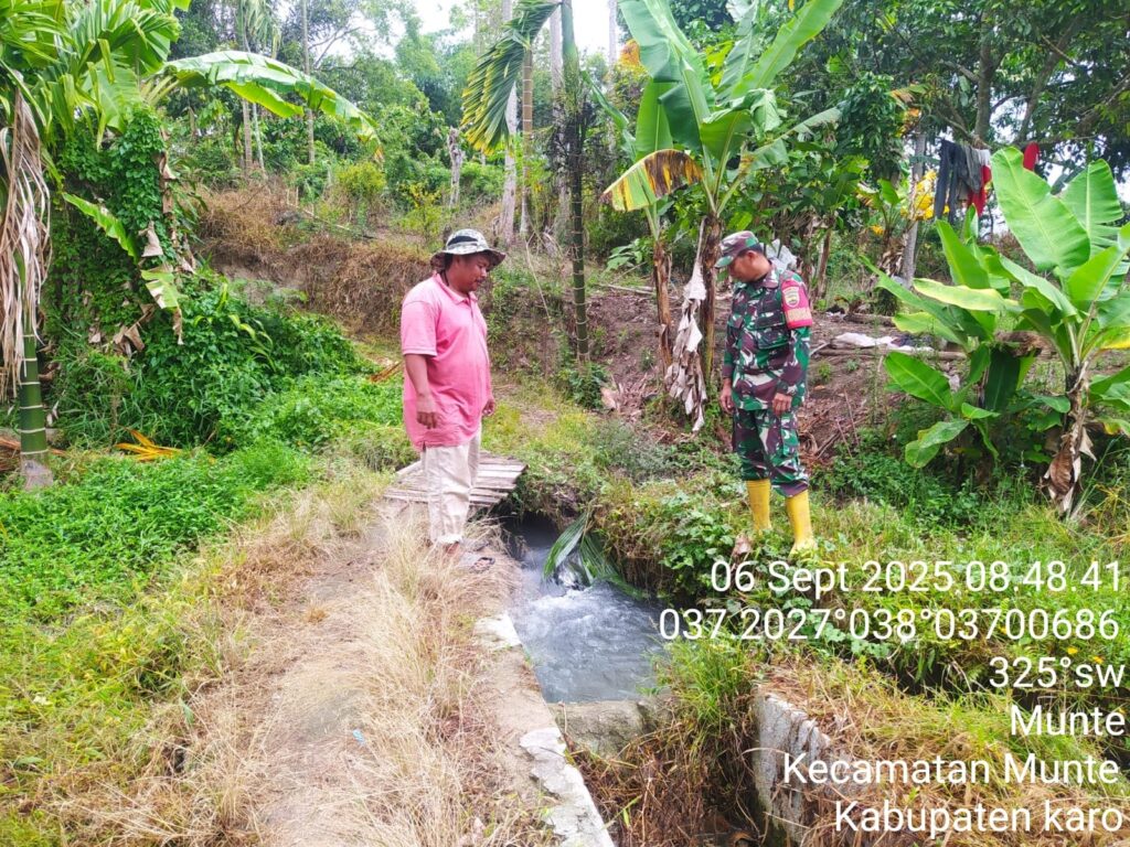 Babinsa Koramil 06 Munte Giat Pendampingan Pengecekan Saluran Irigasi Desa Munte