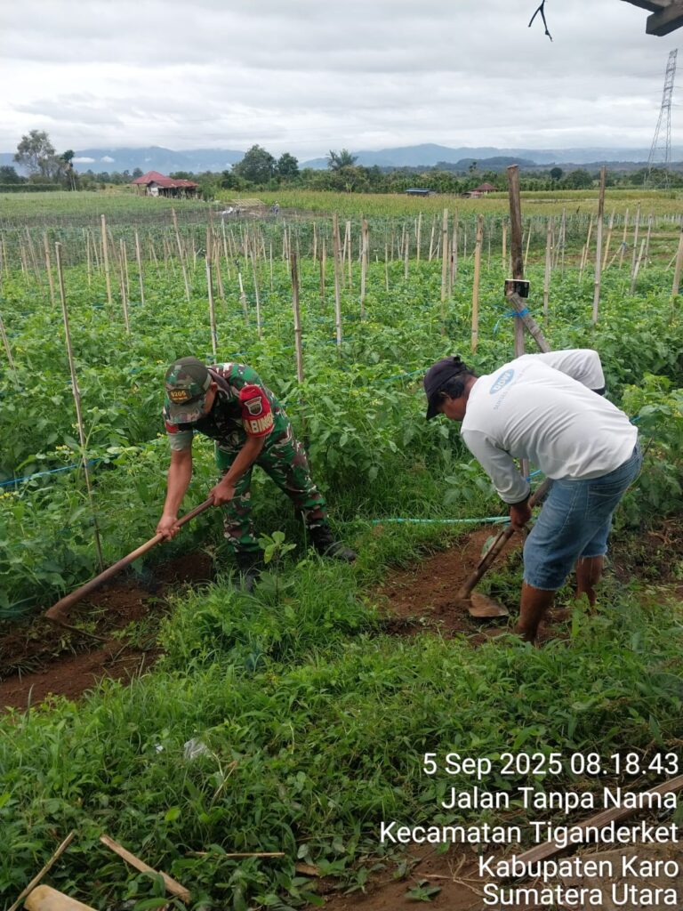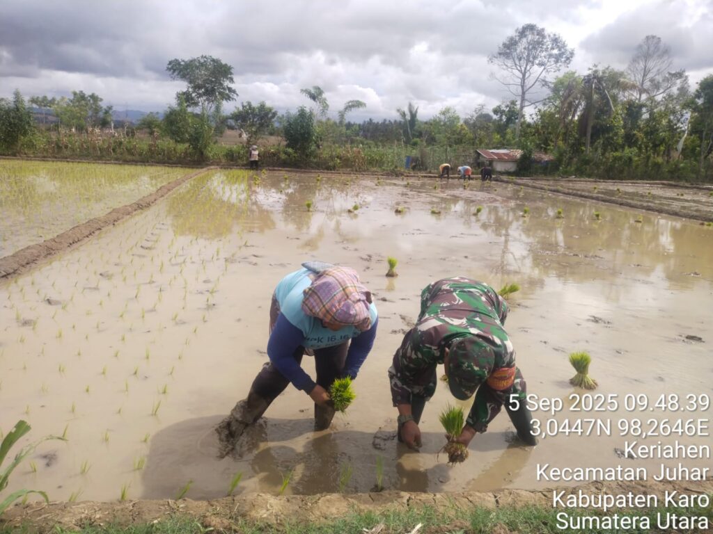 Dukung Ketahanan Pangan Koramil 07 Juhar Bantu Petani Penanaman Padi Sawah di Desa Keriahen