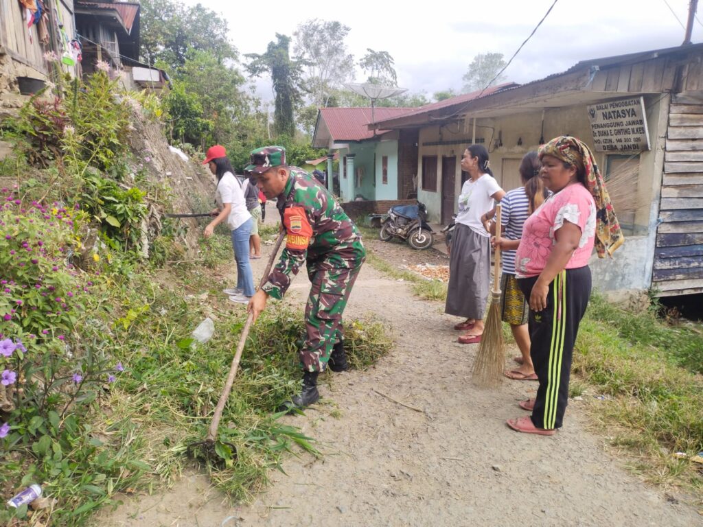 Koramil 07 Juhar Bersama Forkopimca dan Warga Gotong Royong Bersihkan Lingkungan