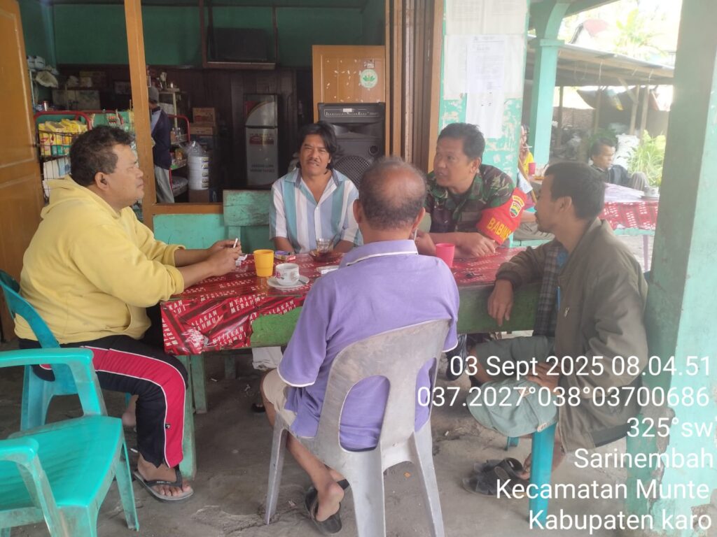 Koramil 09 Lau Baleng Komsos Bersama Perangkat Desa dan Warga Imbau Warga Untuk Jaga Ketertiban dan Keamanan Lingkungan