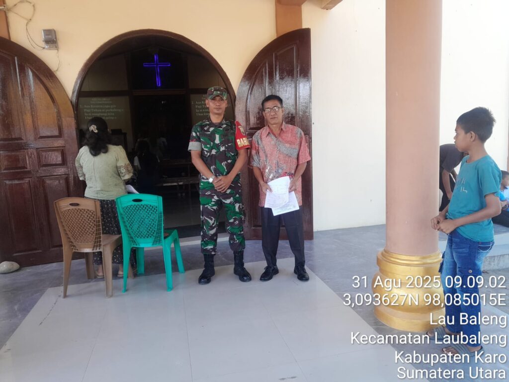 Babinsa Koramil 09 Lau Baleng Pengamanan Gereja GBKP di Desa Lau Baleng