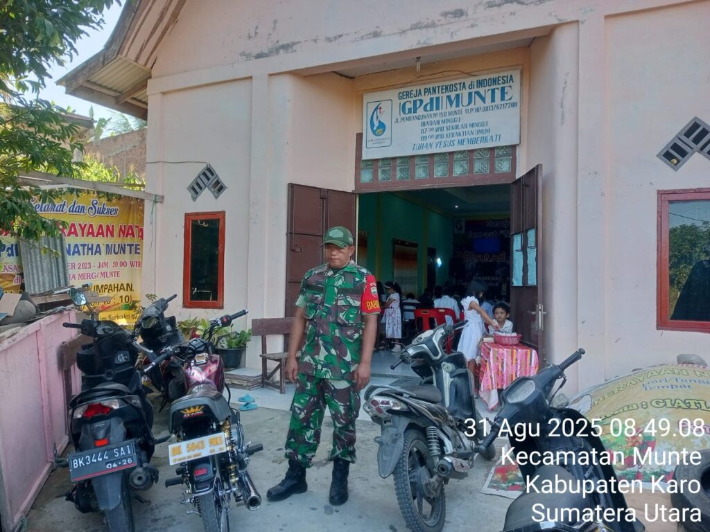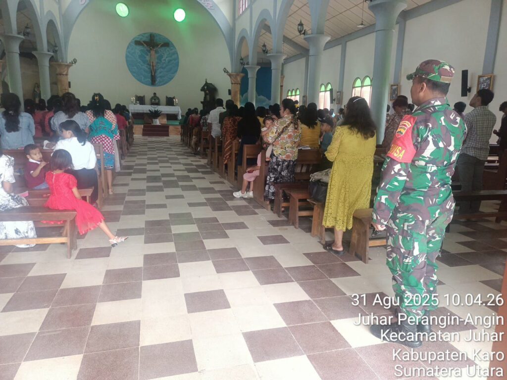 Babinsa Koramil 07 Juhar Pengamanan Gereja Katolik Santa Paulus di Desa Juhar Perangin angin