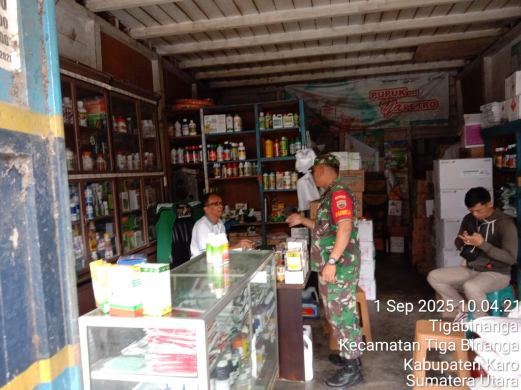 Koramil 08 Tiga Binanga Cek Ketersediaan Pupuk Bersubsidi di UD Sinuraya