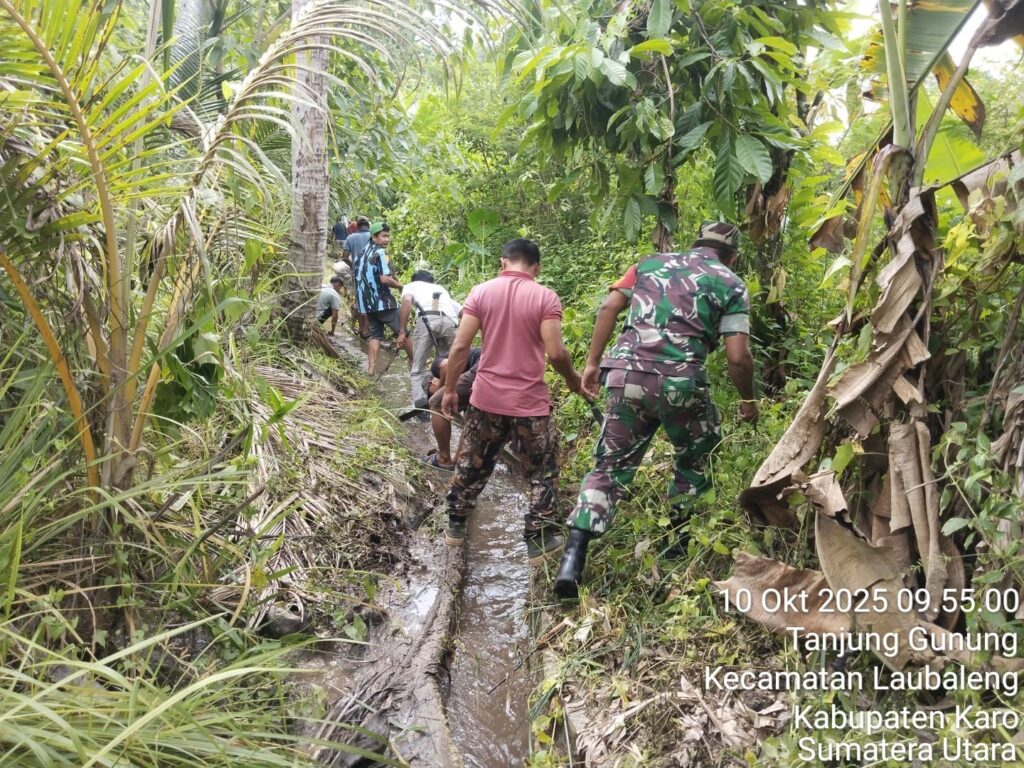 Babinsa Koramil 09 Lau Baleng Gotong Royong Bersihkan Saluran Air Warga