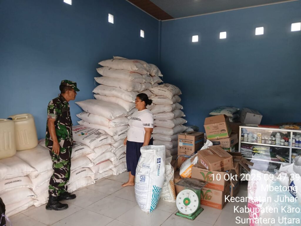 Babinsa Koramil 07 Juhar Cek Ketersediaan Pupuk Bersubsidi di Desa Mbetong