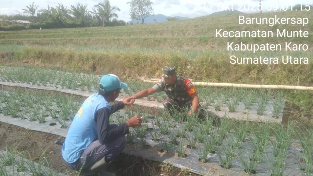 Dukung Ketahanan Pangan Koramil 06 Munte Bantu Petani Perawatan Tanaman Bawang