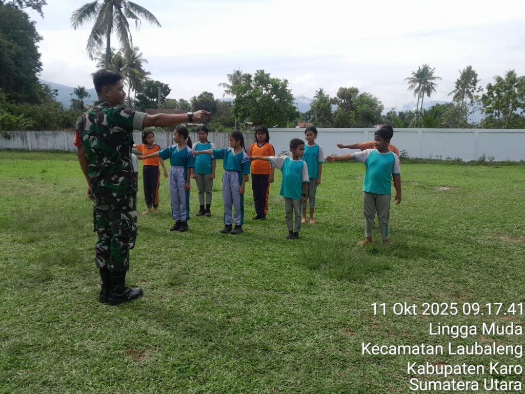 Koramil 09 Lau Baleng Berikan Pelatihan PBB Kepada Siswa SD Negeri 040554 Desa Lingga Muda
