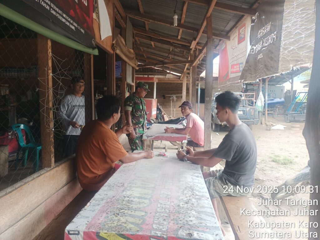 Babinsa Koramil 03 Berastagi Komsos Bersama Warga Imbau Tidak Terlibat Perjudian dan Narkotika