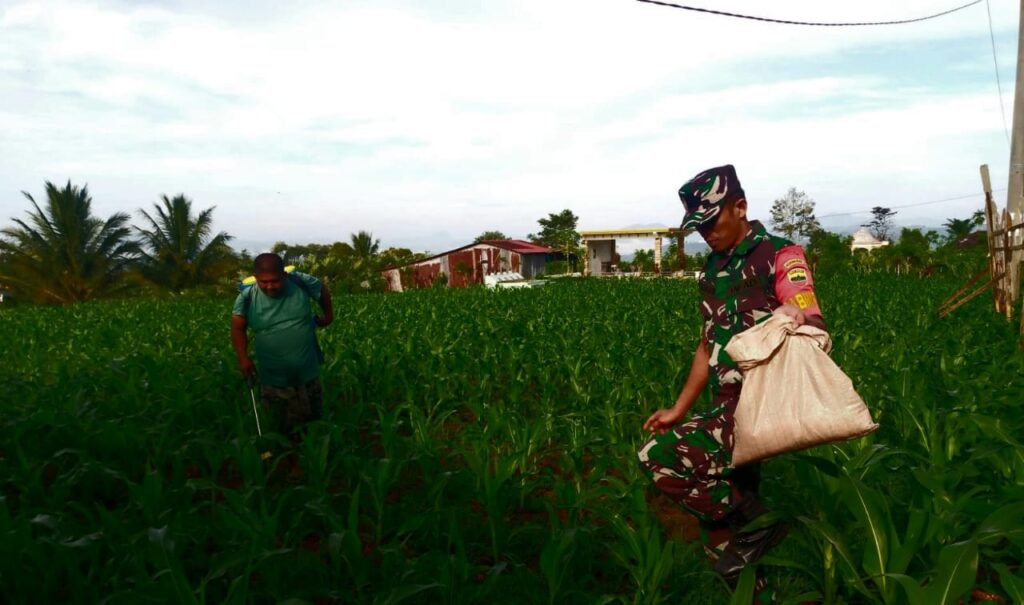 Dukung Ketahanan Pangan Koramil 05 Payung Giat Pemupukan Tanaman Jagung Bersama Petani