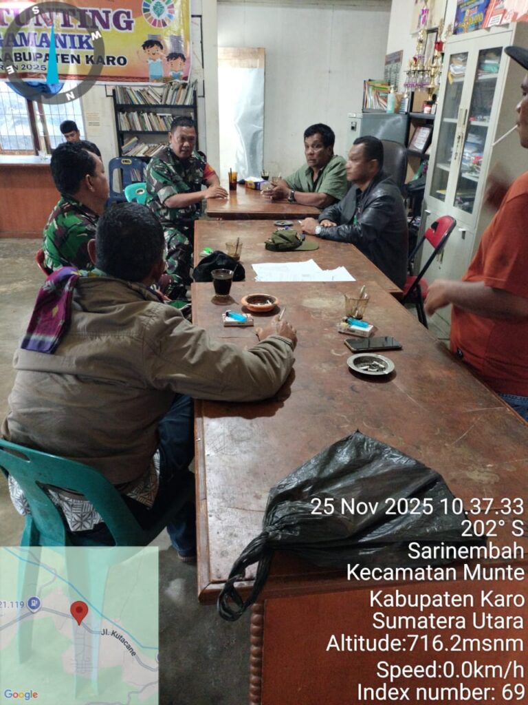 Karo, Jurnaliskaro.com,- Untuk menciptakan situasi yang aman, Koramil 06 Munte Kodim 0205 Tanah Karo melaksanakan Komunikasi Sosial (Komsos) di Kantor Desa Singgamanik Kec. Munte, Selasa (25/11/2025) siang. Dalam kegiatan tersebut Danramil Koramil 06 Munte Kapten Inf JE Sembiring, melaksanakan komsos bersama dengan perangkat desa terkait pembangunan Koperasi Merah Putih. “Giat kita ini diskusi mengenai […]