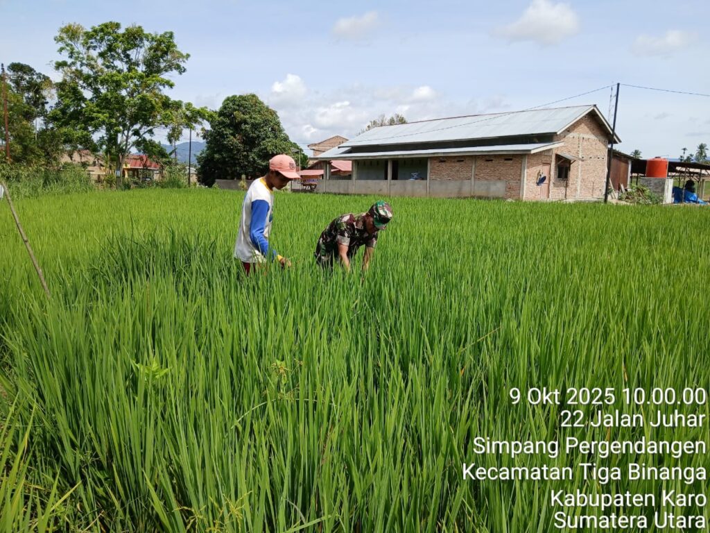 Karo, Jurnaliskaro.com,- Dukung Program Pemerintah dalam Bidang Ketahanan Pangan, Koramil 07 Juhar Kodim 0205 Tanah Karo laksanakan giat pendampingan peningkatan hasil pertanian tanaman padi sawah di Desa Mbetong Kec. Juhar, Kab. Karo, Kamis (09/10/2025) siang. Babinsa Koramil 07 Juhar Pelda T. Ivan, menyampaikan kegiatan ini adalah komunikasi sosial dengan petani tentang perawatan serta pengecekan […]
