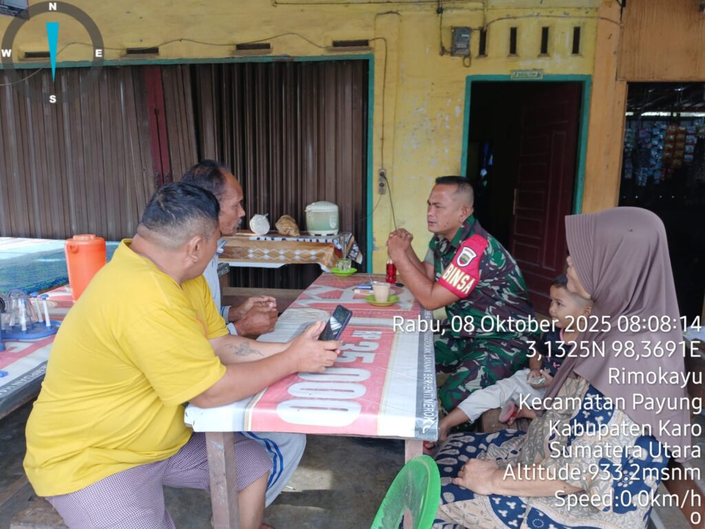 Babinsa Koramil 08 Tiga Binanga Komsos Ajak Warga Jaga Ketertiban dan Keamanan Lingkungan