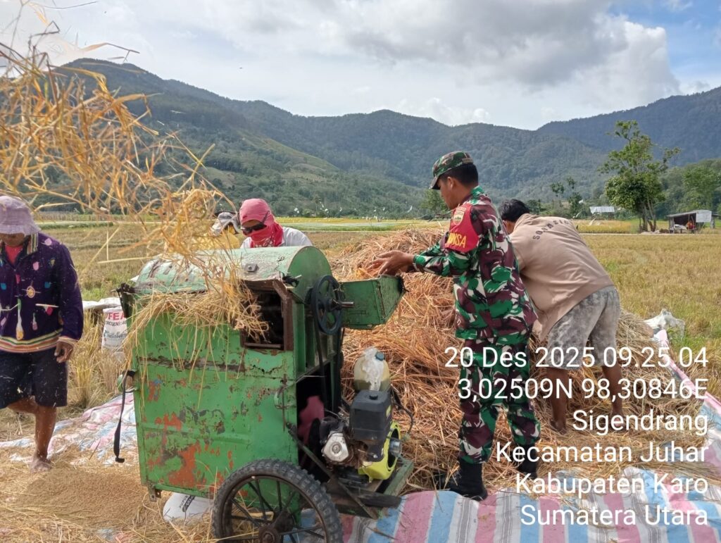 Karo, Jurnaliskaro.com,- Dukung program Ketahanan Pangan sekaligus menjalin kebersamaan dan sinergitas antara masyarakat dengan TNI, Koramil 07 Juhar Kodim 0205 Tanah Karo membantu petani pengolahan lahan pertanian di Desa Sigenderang Kec. Juhar, Sabtu (20/12/2025) pagi. Dalam kegiatan tersebut, Babinsa Koramil 07 Juhar Serka R. Hutagalung, melaksanakan kegiatan panen padi. “Giat kita kali ini kita […]