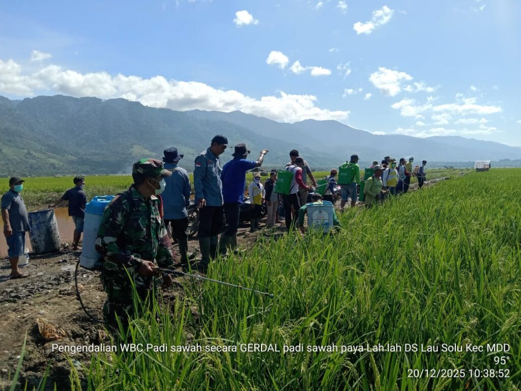 Dukung Ketahanan Pangan Koramil 09 Lau Baleng Giat Penyemprotan Hama Secara Massal