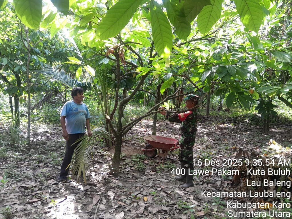 Dukung Ketahanan Pangan Koramil 09 Lau Baleng Bantu Petani Perawatan Tanaman Kakao