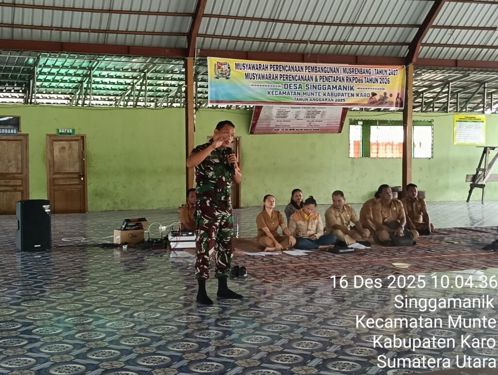 Karo, Jurnaliskaro.com,- Dalam rangka menjalin silaturahmi dengan masyarakat, Koramil 06 Munte Kodim 0205 Tanah Karo menghadiri undangan Musrenbang RKPD (Rencana kerja Pembangunan Daerah) Program Pembangunan Tahun 2026 di Desa Singgamanik Kec. Munte Kab. Karo, Selasa (16/12/2025) siang. Menurut Babinsa Koramil 06 Munte Sertu M. Sebayang, bahwasanya kegiatan ini adalah untuk menjalin kebersamaan dan silaturahmi […]