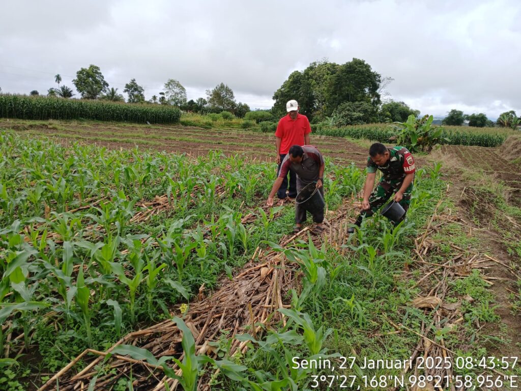 Babinsa Koramil 05 Payung Serda J. Simbolon, menyampaikan kegiatan ini adalah komunikasi sosial dengan petani dan perawatan dan sekaligus pemupukan tanaman jagung jenis NK Garuda 306 dengan luas 1/2 hektar. Dan juga untuk memberikan pemahaman dan solusi kepada petani dalam hal bercocok tanam.