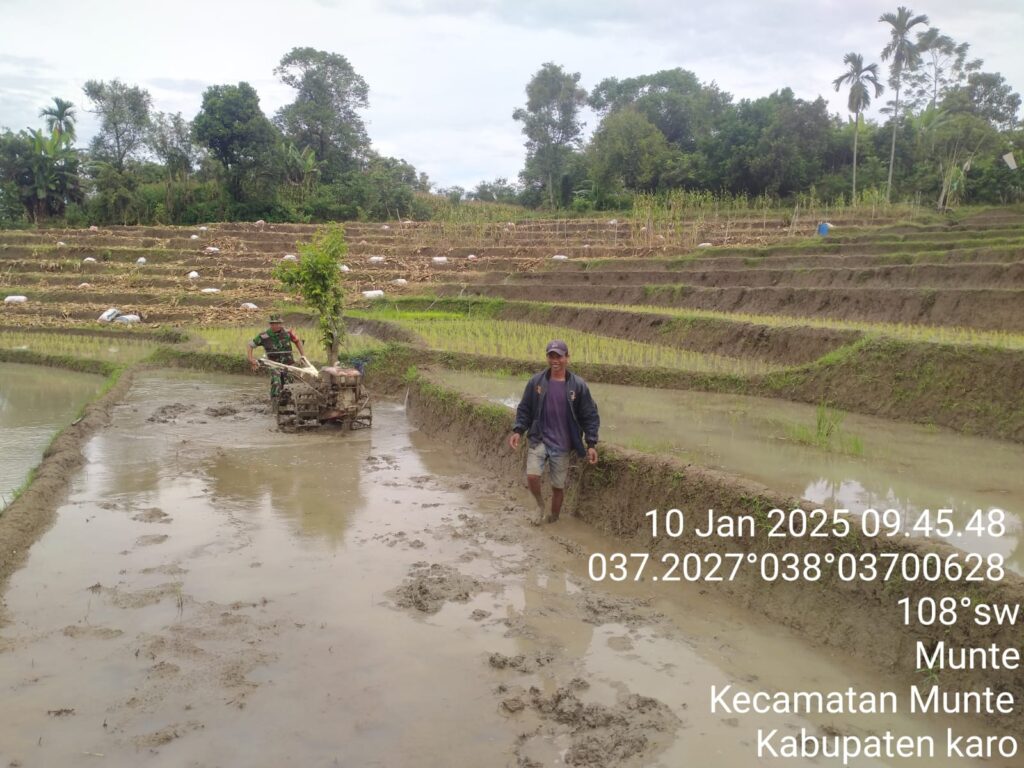 Karo, Jurnaliskaro.com,- Koramil 06 Munte Kodim 0205 Tanah Karo melaksanakan kegiatan pengolahan dan perawatan lahan pertanian bersama masyarakat di Desa Munte Kec. Munte, Jumat (10/01/2025) pagi.