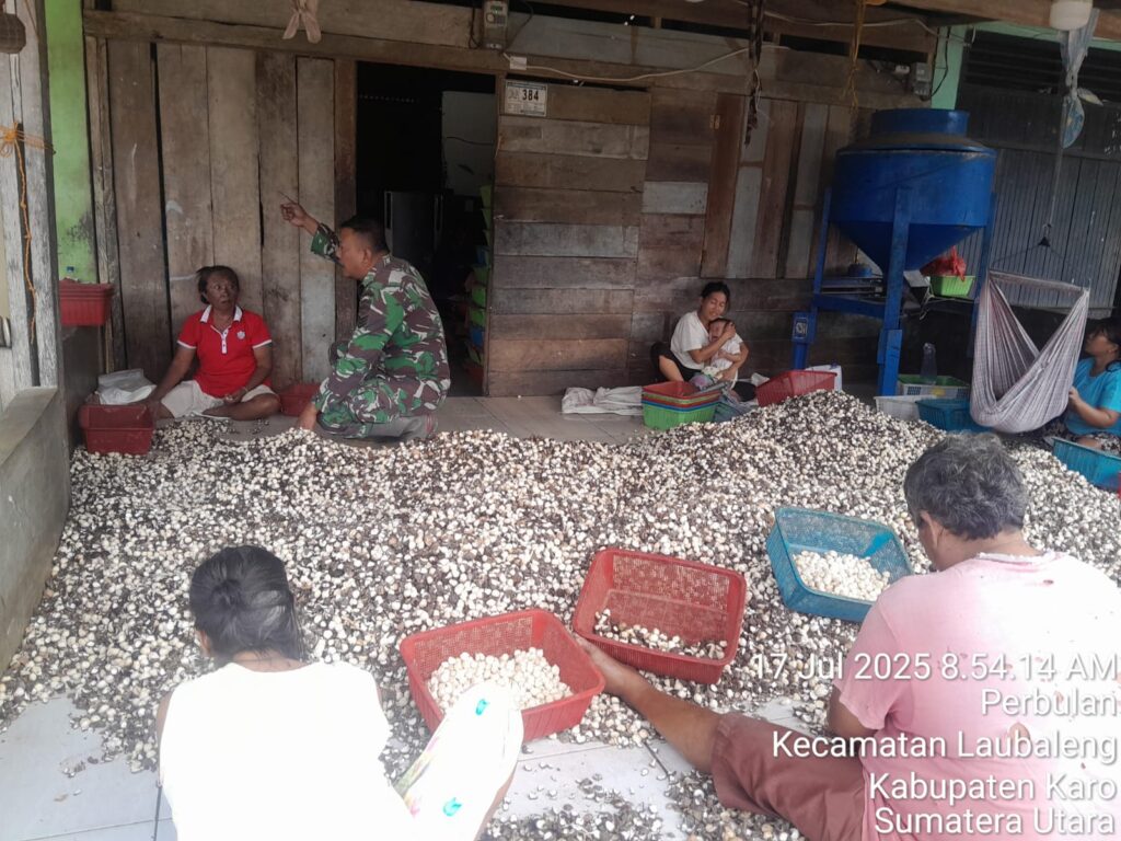 Anggota Babinsa Koramil 09 Lau Baleng Serka M. Dian, ikut melaksanakan kegiatan pendampingan dalam membantu petani monitoring hasil kebun petani yakni diantaranya kemiri.