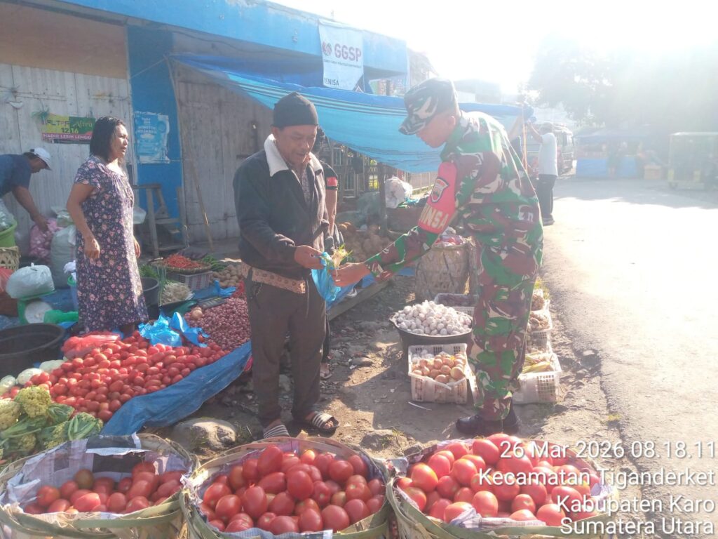 Karo, Jurnaliskaro.com,- Guna memastikan ketersediaan stok sembako, Koramil 05 Payung Kodim 0205 Tanah Karo untuk memantau stok ketersediaan sembako di Pasar Tradisional di Desa Tiga Nderket Kec. Tiga Nderket, Kab. Karo, Kamis (26/03/2026) siang.