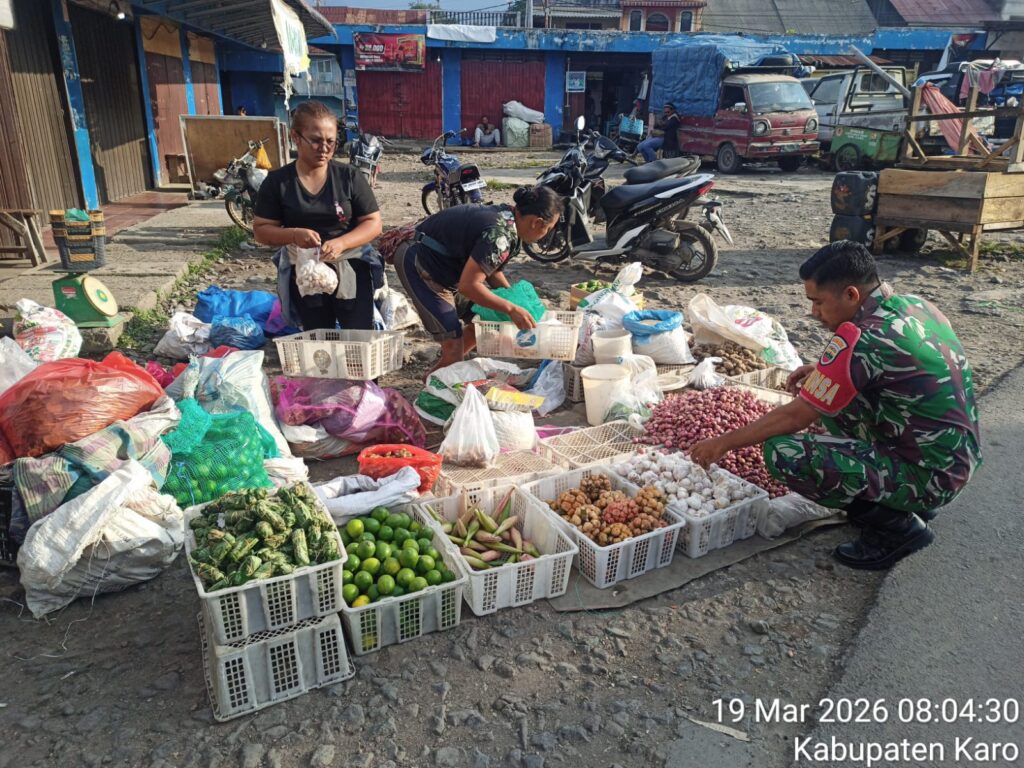 Karo, Jurnaliskaro.com,- Guna memastikan ketersediaan stok sembako, Koramil 05 Payung Kodim 0205 Tanah Karo untuk memantau stok ketersediaan sembako di Pasar Tradisional di Desa Tiga Nderket Kec. Tiga Nderket, Kab. Karo, Kamis (19/03/2026) siang.