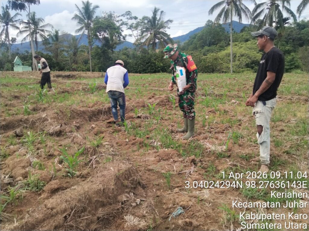 Karo, Jurnaliskaro.com,- Koramil 07 Juhar Kodim 0205 Tanah Karo, bersama masyarakat khususnya petani melaksanakan pendampingan kegiatan penanaman bibit jagung di Desa Keriahen Kec. Juhar, Rabu (01/04/2026) pagi.
