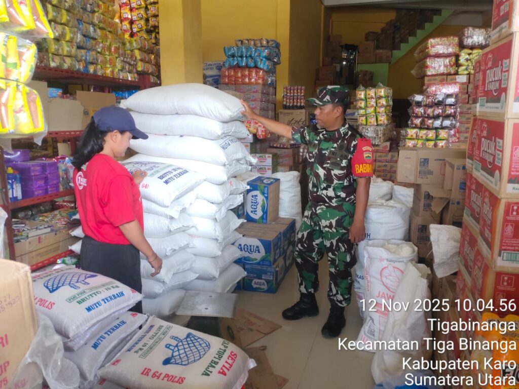 Karo, Jurnaliskaro.com,- Guna memastikan ketersediaan stok sembako, Koramil 08 Tiga Binanga Kodim 0205 Tanah Karo untuk memantau stok ketersediaan sembako di grosir Yohana br Sebayang di Jalan Simpang Kuala Baru Kel. Tiga Binanga Kec. Tiga Binanga, Kab. Karo, Rabu (12/11/2025) siang.
