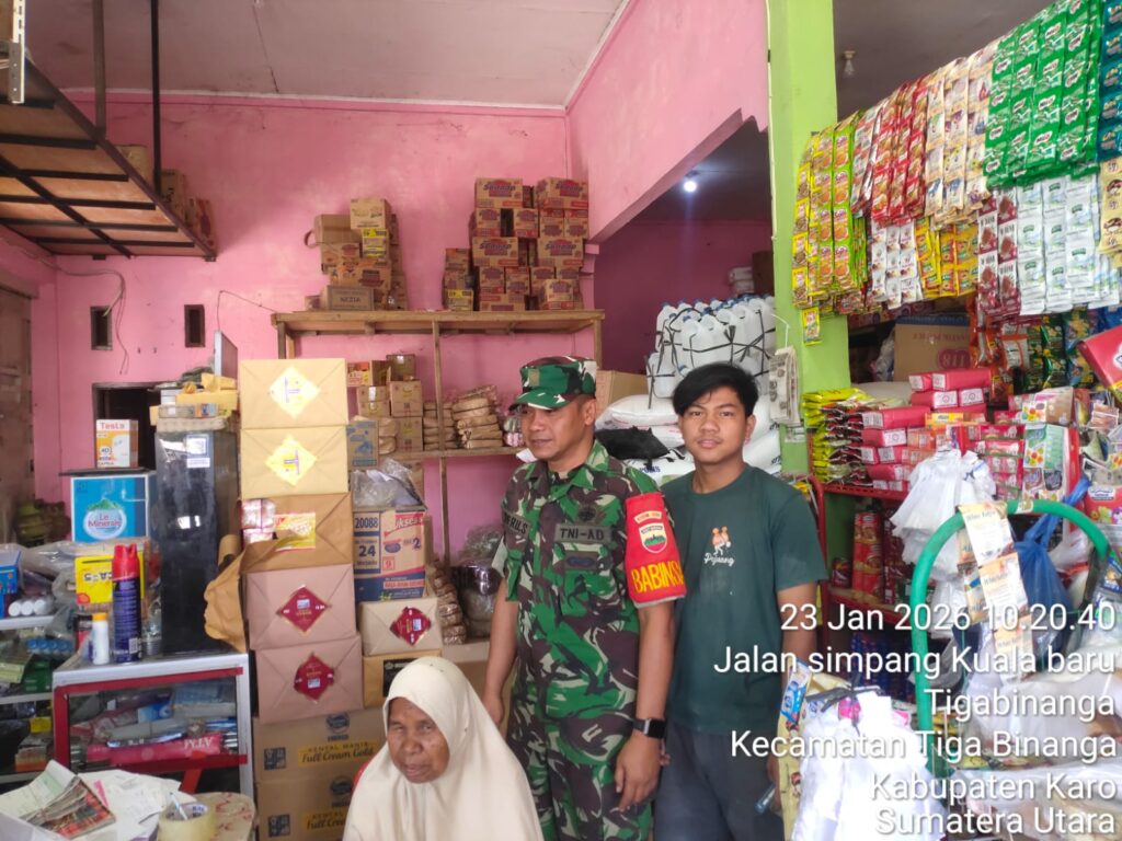Karo, Jurnaliskaro.com,- Guna memastikan ketersediaan stok sembako, Koramil 08 Tiga Binanga Kodim 0205 Tanah Karo untuk memantau stok ketersediaan sembako di grosir di Kel. Tiga Binanga Kec. Tiga Binanga, Kab. Karo, Jumat (23/01/2026) siang.